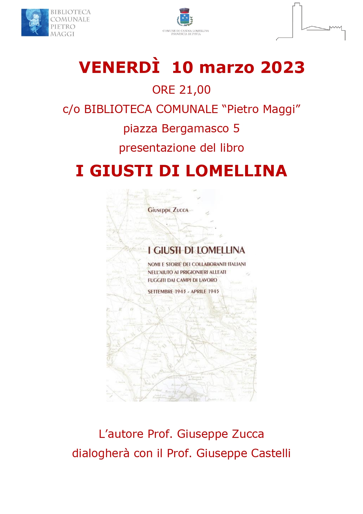 VENERDÌ 10 marzo 2023 ore 21,00 c/o BIBLIOTECA COMUNALE “Pietro Maggi” in piazza Eugenio Bergamasco 5