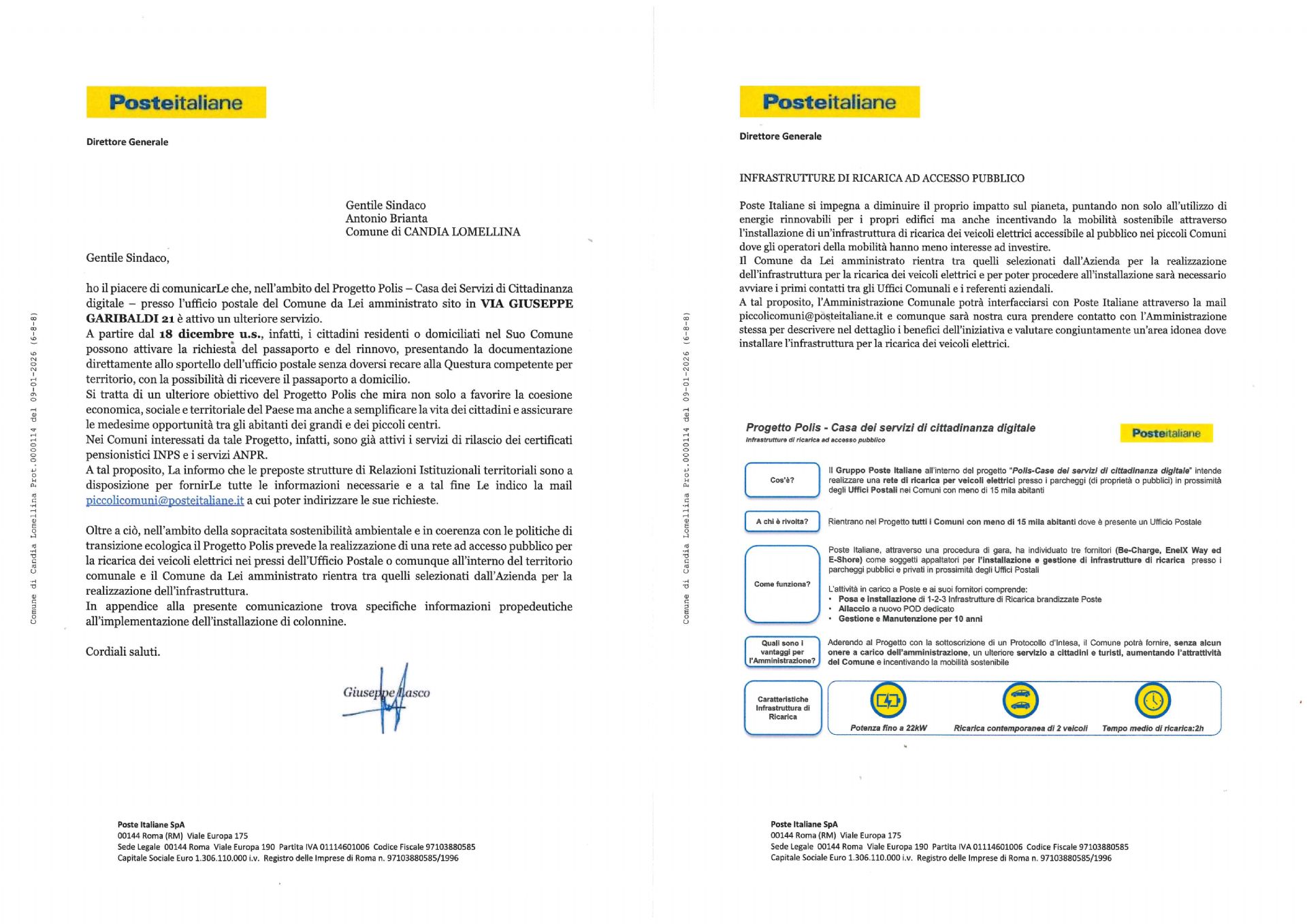 Nell'ambito del Progetto Polis di Poste Italiane è stato introdotto un nuovo servizio relativo all'attivazione della richiesta di rilascio o rinnovo passaporto direttamente dallo sportello dell'Ufficio Postale di Candia Lomellina.