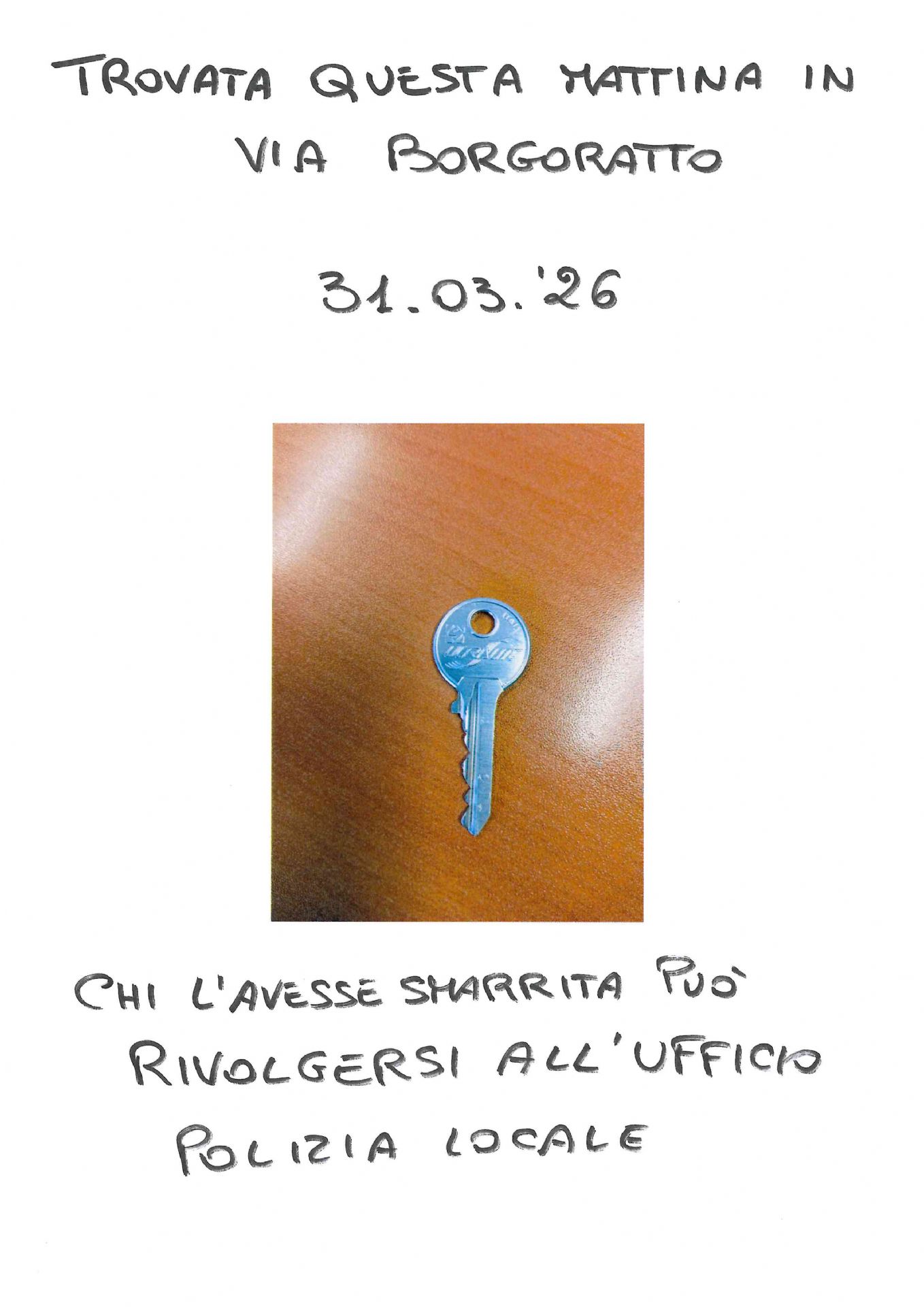 Ritrovata questa mattina una chiave senza alcuna indicazione in via Borgoratto
