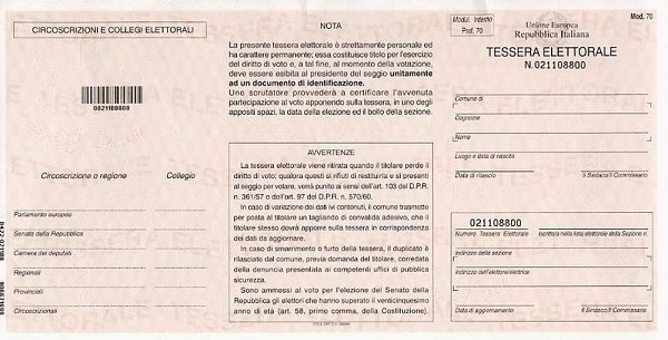 Per ricevere la nuova tessera E’ OBBLIGATORIO esibire la tessera elettorale esaurita negli spazi, che verrà restituita al titolare.