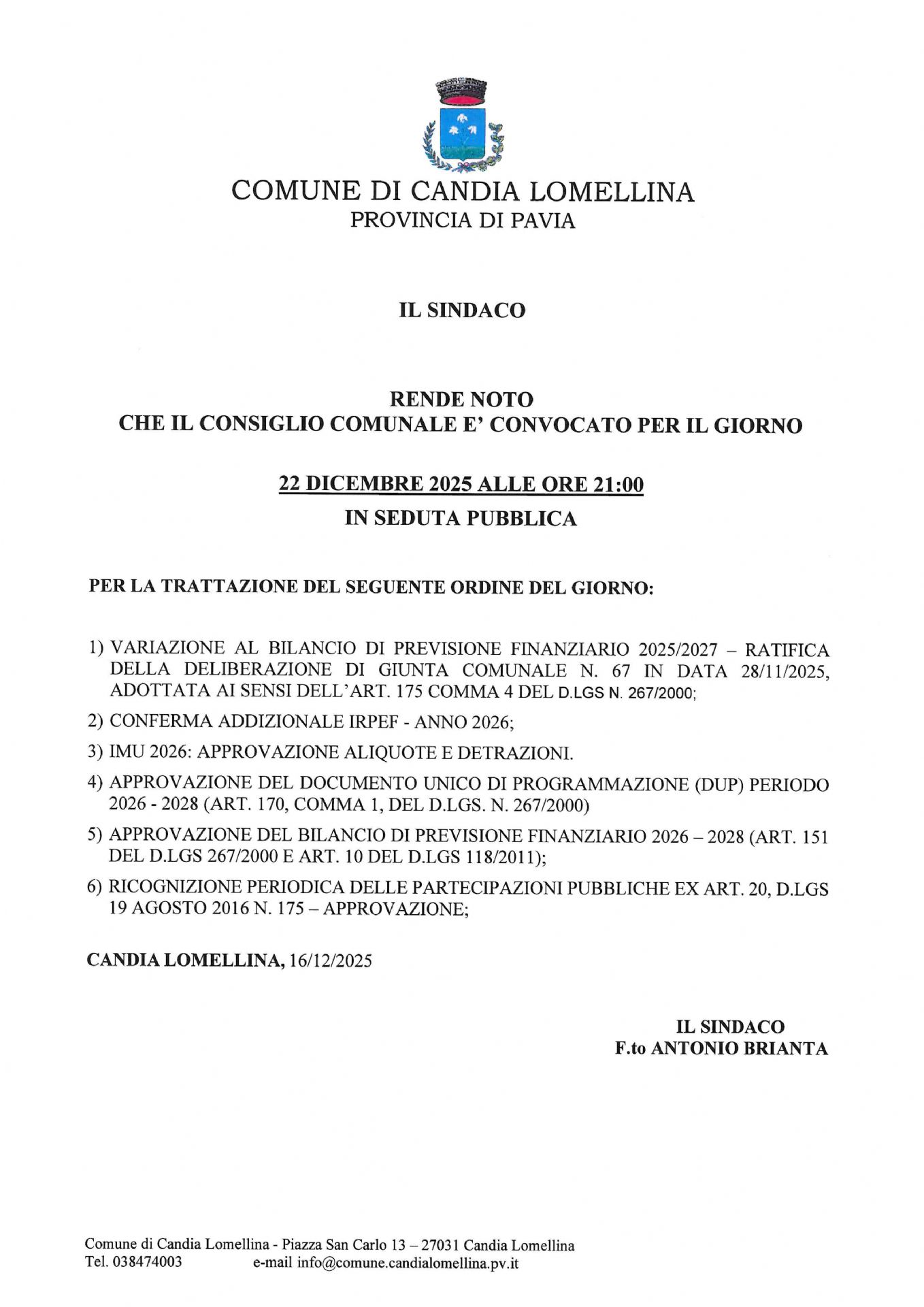 Si allega l'avviso con l'ordine del giorno della seduta.