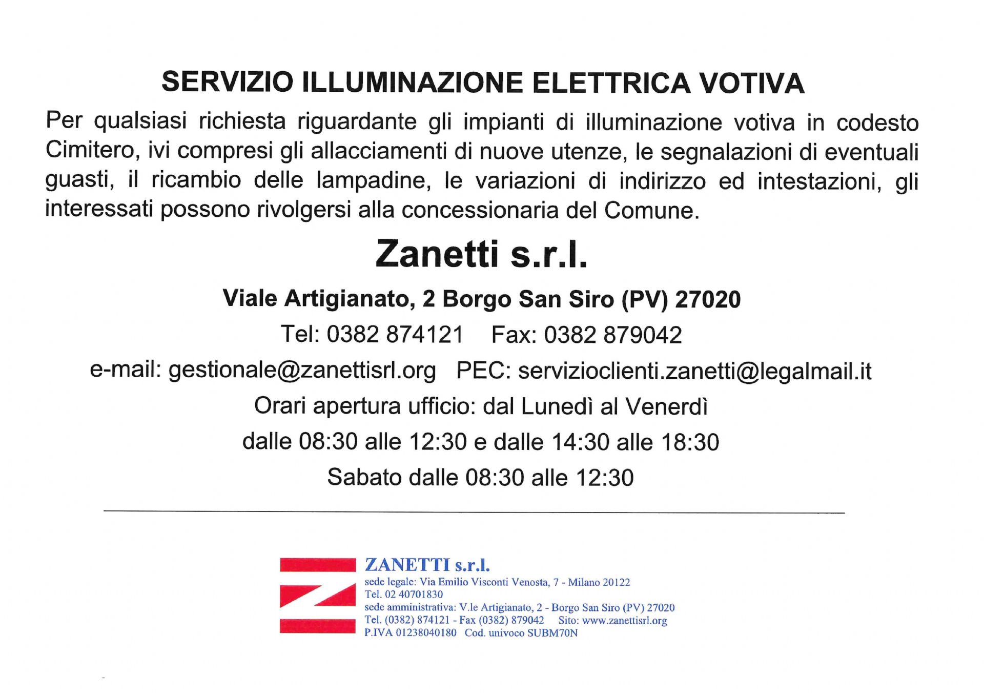 Dal 01/04/2025 la luce votiva (bollette, allacciamenti, sostituzioni lampadine ecc.) per il Cimitero di Candia Lomellina è gestita dalla Ditta Zanetti Srl.